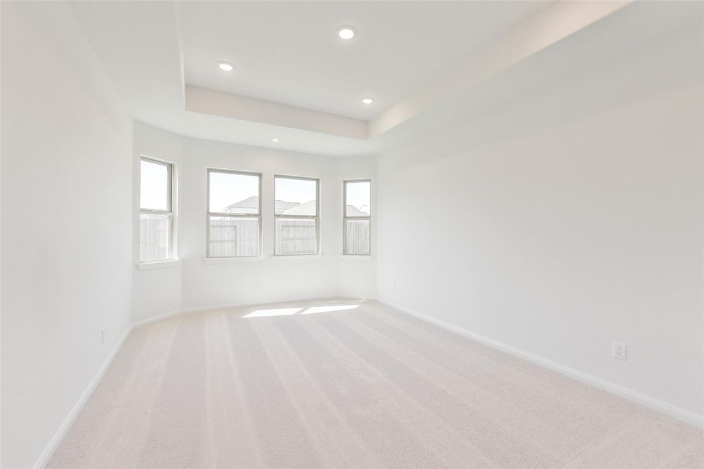 Beautiful two-story home featuring a striking stone/brick elevation and covered rear patio. Highlights include a formal dining room, media room, and a conveniently located downstairs bedroom with a full bath. The open island kitchen boasts a tile backsplash, a built-in gas cooktop, and a double wall oven. Luxury vinyl plank flooring flows through the main living areas, complemented by an upgraded glass-textured front door. The spacious master suite offers a high ceiling, bay window, oversized spa shower, dual vanities, and a walk-in closet. Enjoy the large backyard with a full irrigation sprinkler system.