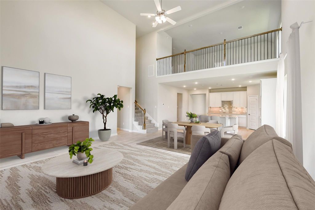 This stunning stone and brick home features an extended covered patio and grand entry with soaring ceilings. Inside, enjoy a formal dining room and open island kitchen with tile floors, a 10” deep undermount sink, tile backsplash, and built-in gas cooktop—perfect for entertaining. The spacious master suite offers a high ceiling, bay window, and spa-like bath with oversized shower, dual vanities, and walk-in closet. Upstairs boasts a large game room for family fun. An upgraded glass-textured front door and full irrigation system complete this exceptional home.